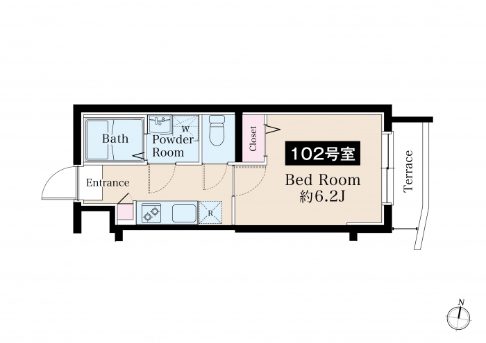 | 間取り詳細 | 洋室(6.2J)・K(2.0J) |