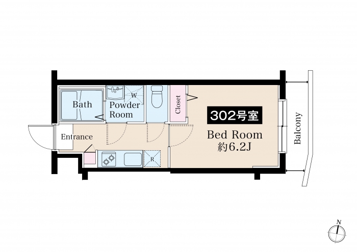 | 間取り詳細 | 洋室(6.2J)・K(2.0J) |