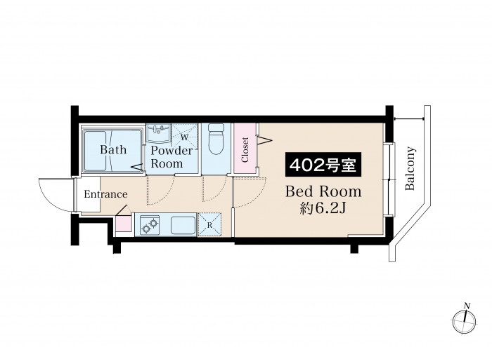 | 間取り詳細 | 洋室(6.2J)・K(2.0J) |