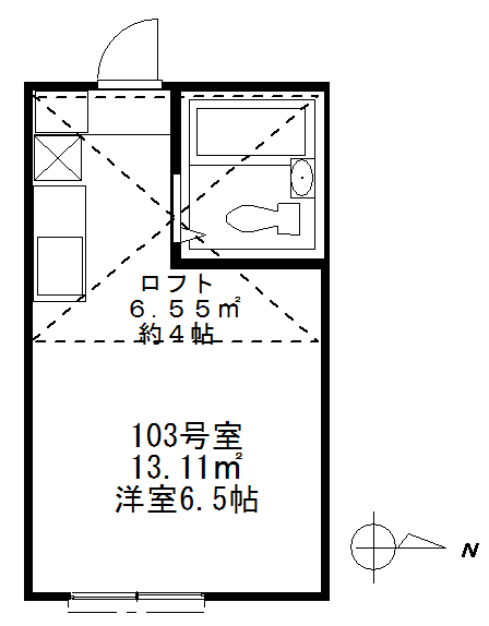 | 間取り(面積) | ワンルーム+ロフト (13.11+6.55㎡) |