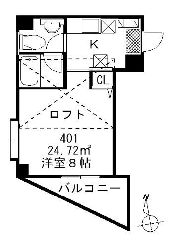 | 間取り(面積) | 1K+ロフト (24.72+9.72㎡) |