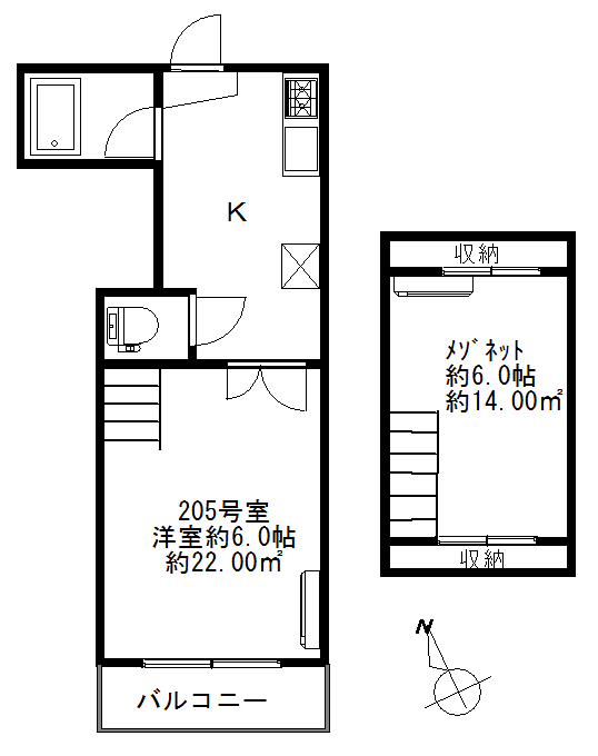 | 間取り詳細 | 洋室(6.0J) ・ 洋室(6.0J) ・ K(3.5J) |