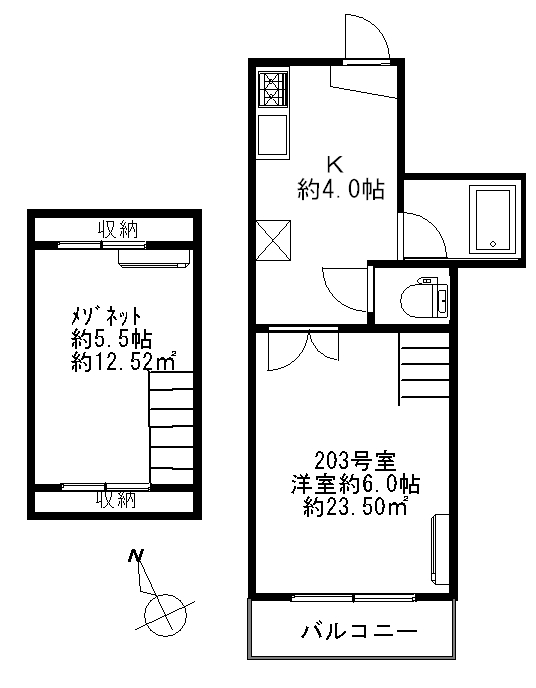 | 間取り詳細 | 洋室(6.0J) ・ 洋室(5.5J) ・ K(4.0J) |