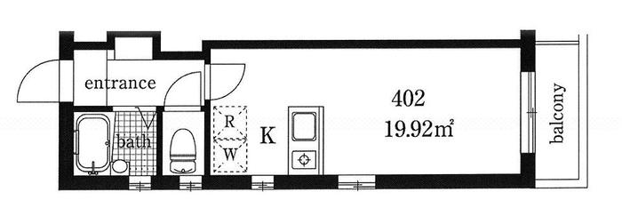 | 間取り(面積) | ワンルーム (19.92㎡) |