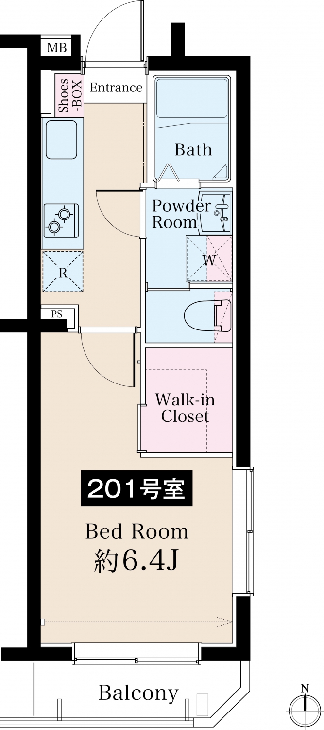 | 間取り詳細 | 洋室(6.4J)・K(2.0J) |