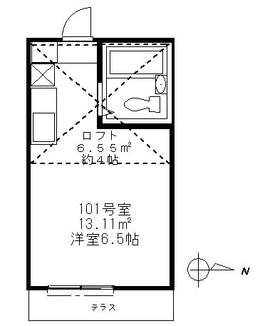 | 間取り(面積) | ワンルーム+ロフト (13.11+6.55㎡) |
